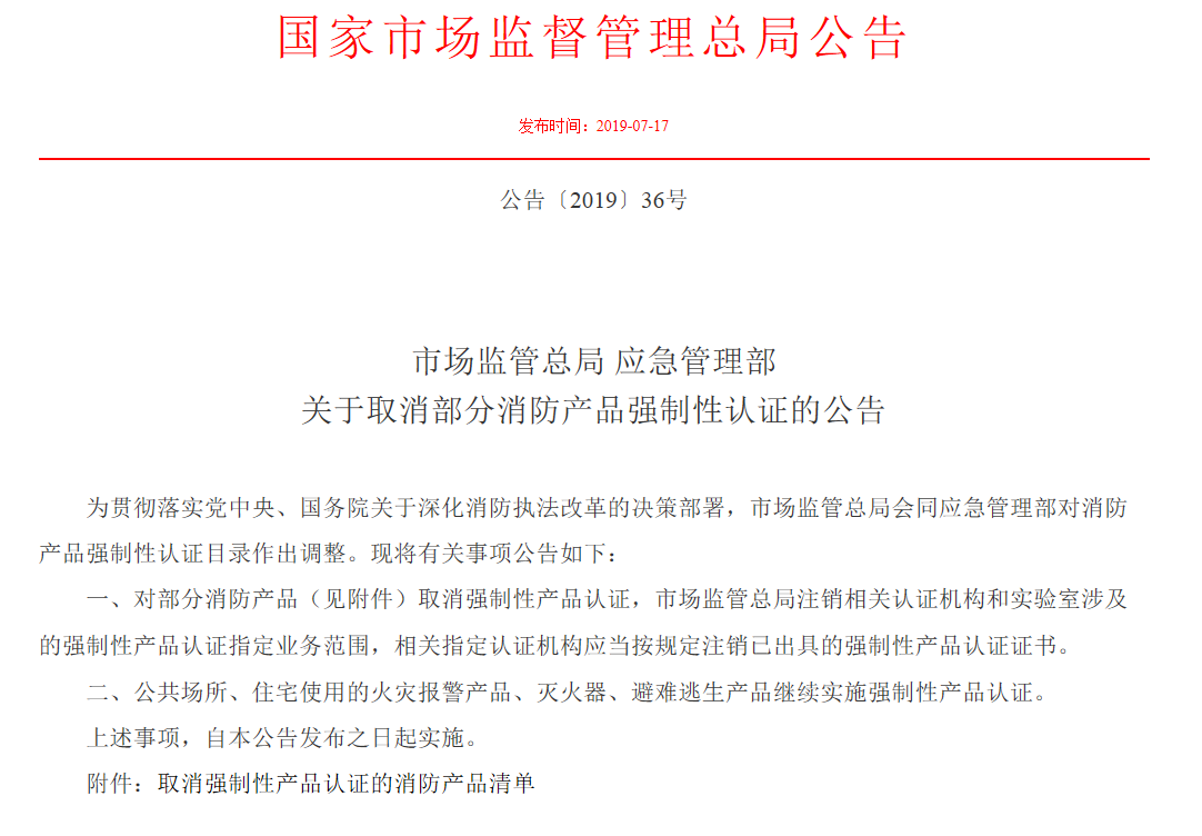 部分消防产品取消强制性认证